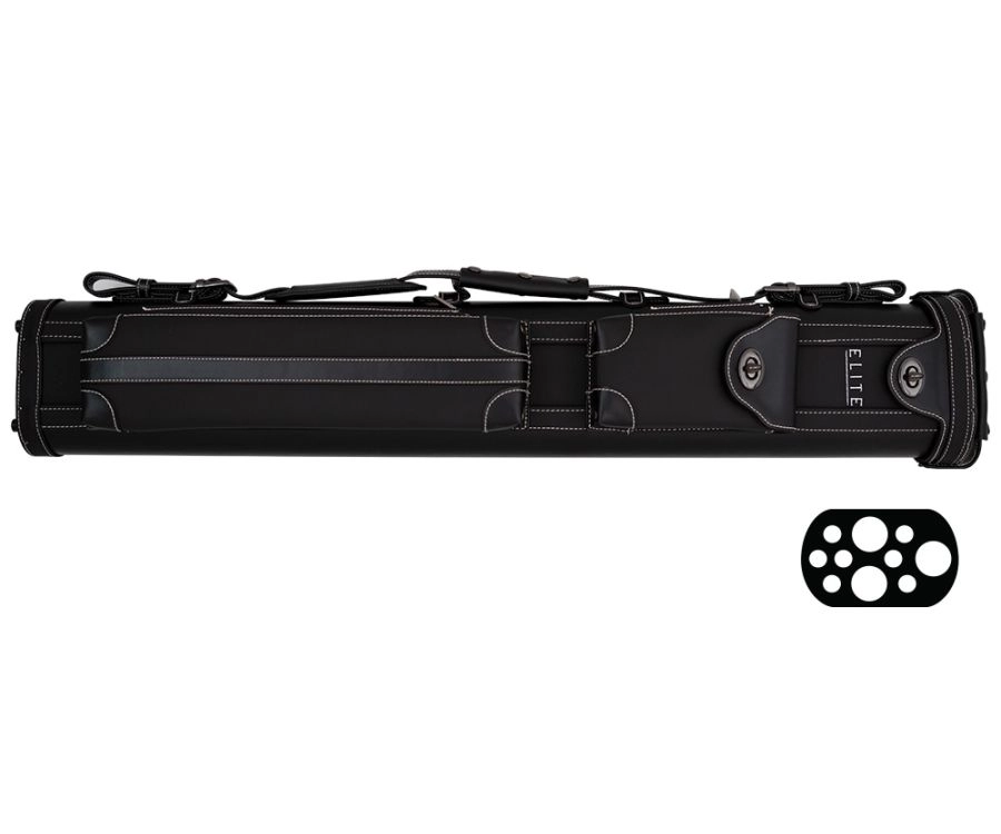 Made of black vinyl and white stitching with all black hardware this case looks sweet. It has carrying handle on the top and side and a shoulder strap.
